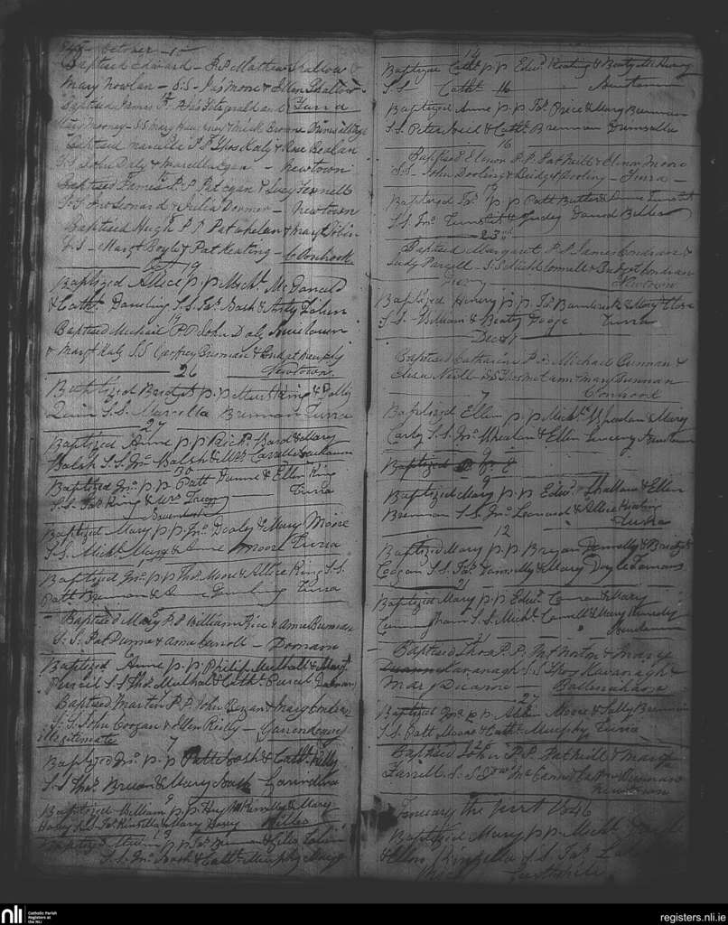 Mayo and Doonane; County of Laois; Diocese of Kildare and Leighlin. Baptisms, Oct. 1845 to Jan. 1846