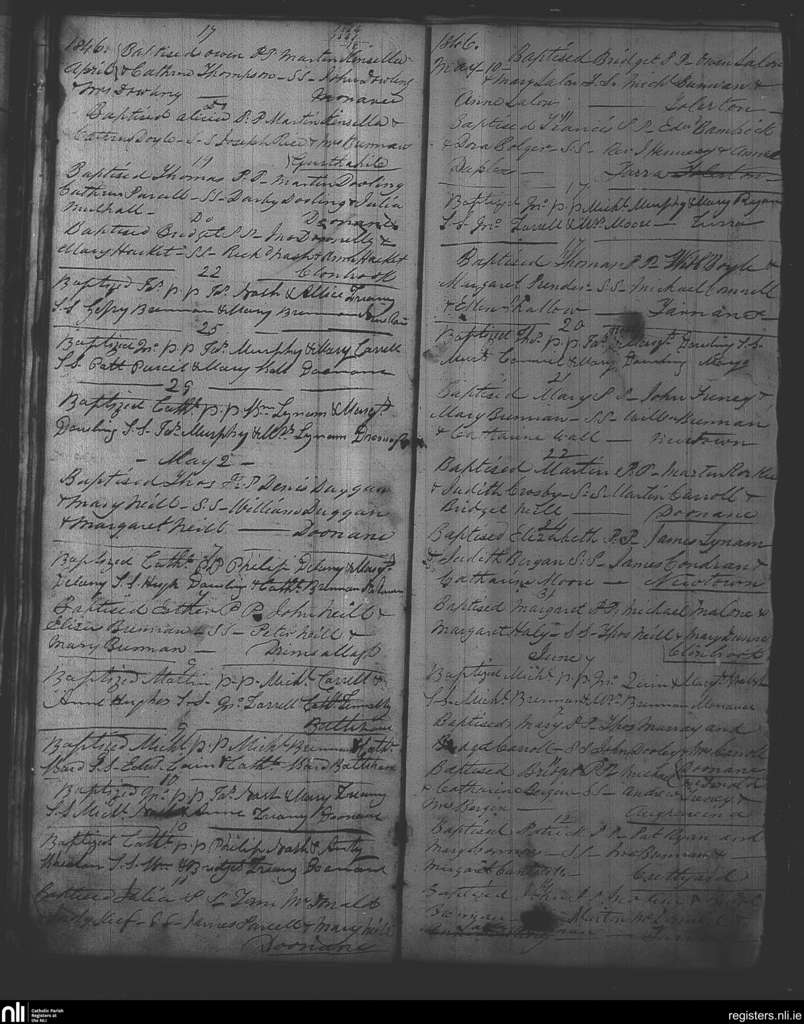 Mayo and Doonane; County of Laois; Diocese of Kildare and Leighlin. Baptisms, Apr. 1846 to June 1846