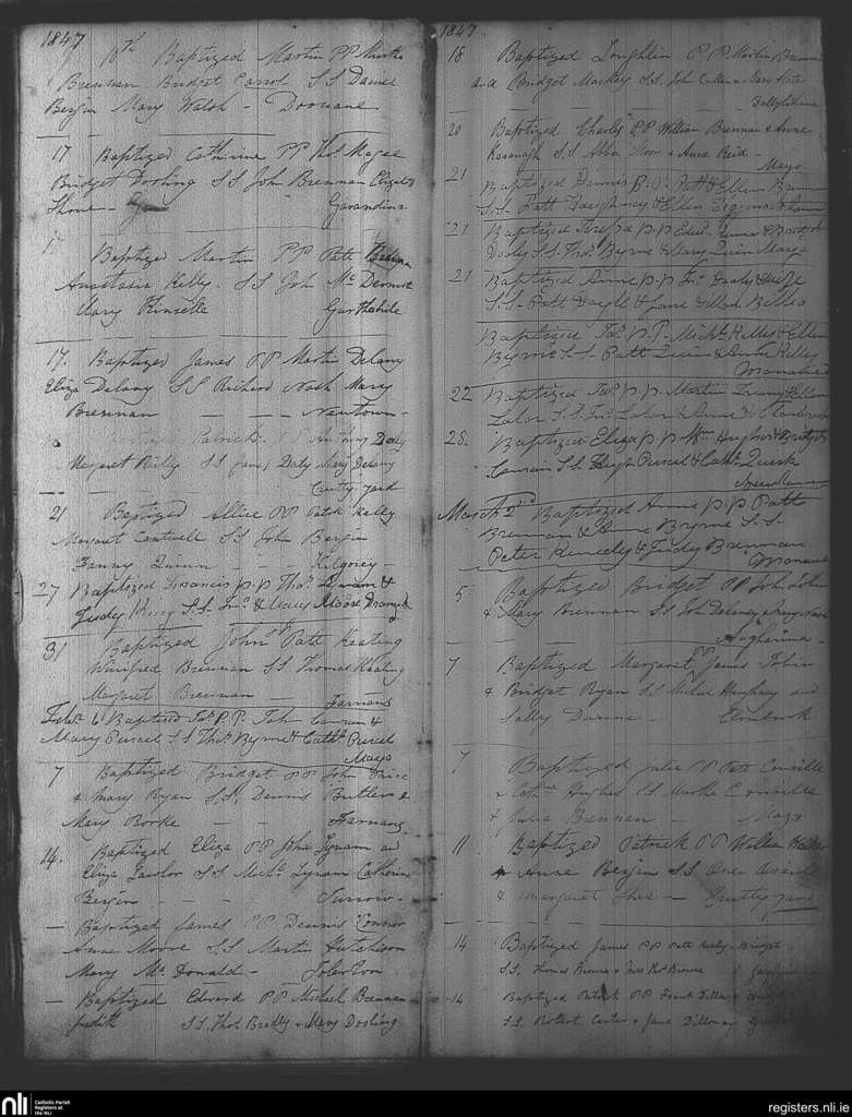 Mayo and Doonane; County of Laois; Diocese of Kildare and Leighlin. Baptisms, Jan. 1847 to Mar. 1847