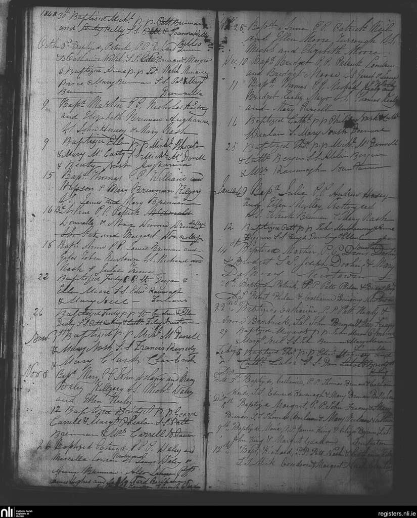 Mayo and Doonane; County of Laois; Diocese of Kildare and Leighlin. Baptisms, Oct. 1848 to Feb. 1849