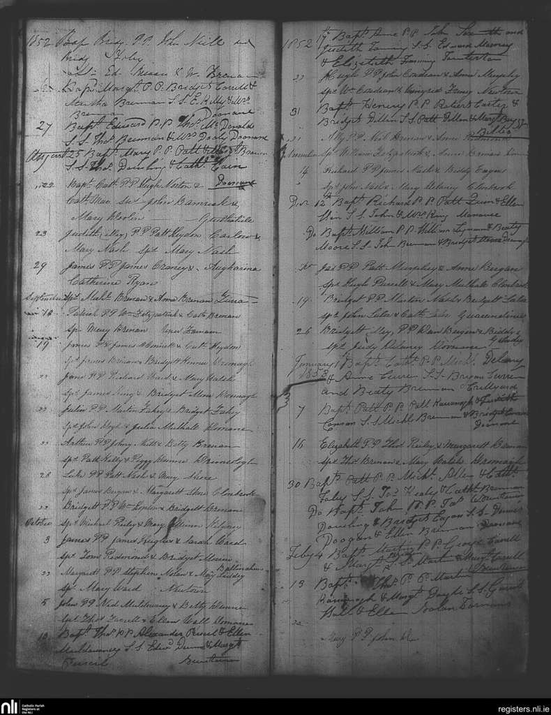 Mayo and Doonane; County of Laois; Diocese of Kildare and Leighlin. Baptisms, July 1852 to Feb. 1853