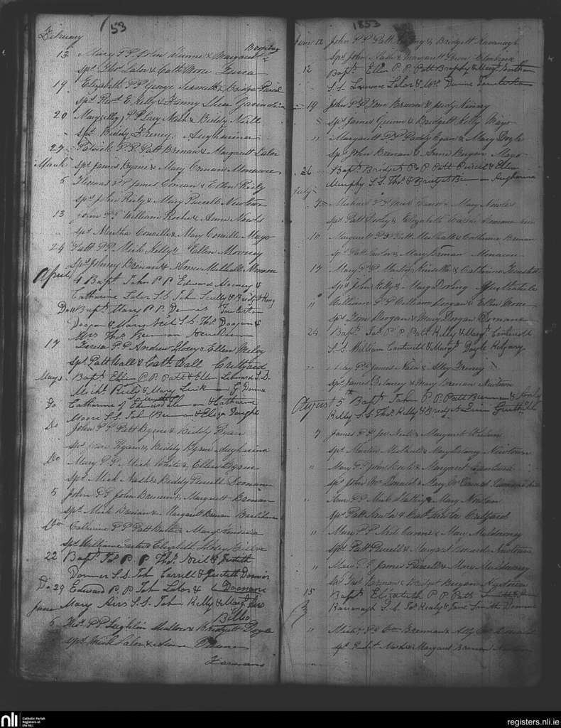 Mayo and Doonane; County of Laois; Diocese of Kildare and Leighlin. Baptisms, Feb. 1853 to Aug. 1853