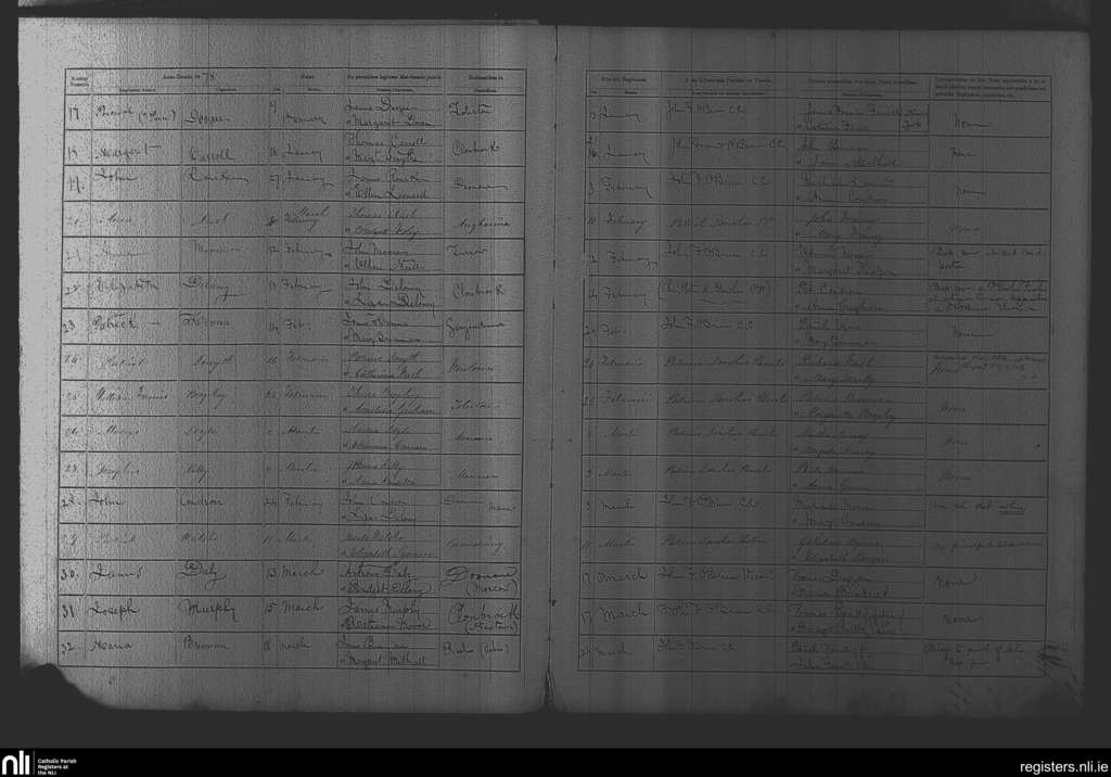 Mayo and Doonane; County of Laois; Diocese of Kildare and Leighlin. Baptisms, Jan. 1878 to Mar. 1878