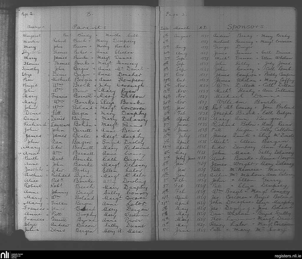 Mountmellick; County of Laois; Diocese of Kildare and Leighlin. Baptisms, Aug. 1837 to June 1839