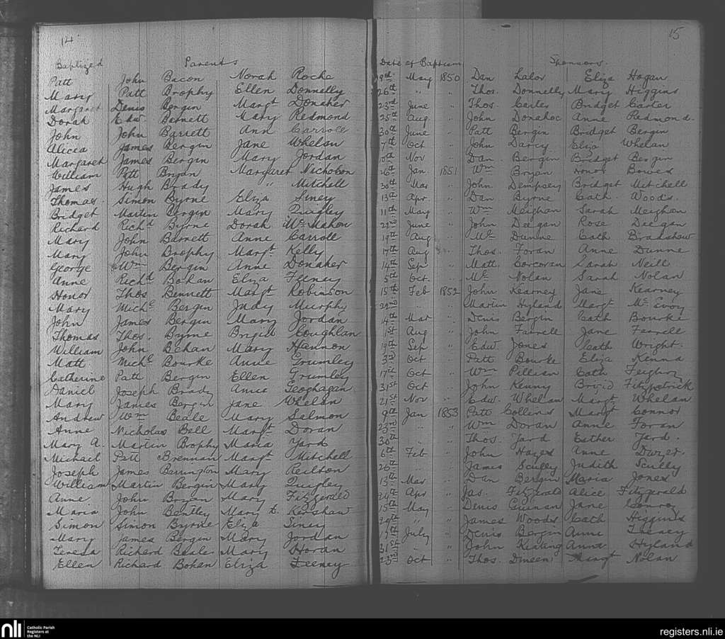 Mountmellick; County of Laois; Diocese of Kildare and Leighlin. Baptisms, May 1850 to Oct. 1853