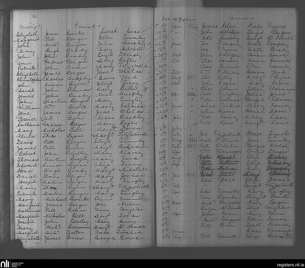 Mountmellick; County of Laois; Diocese of Kildare and Leighlin. Baptisms, Jan. 1854 to June 1858