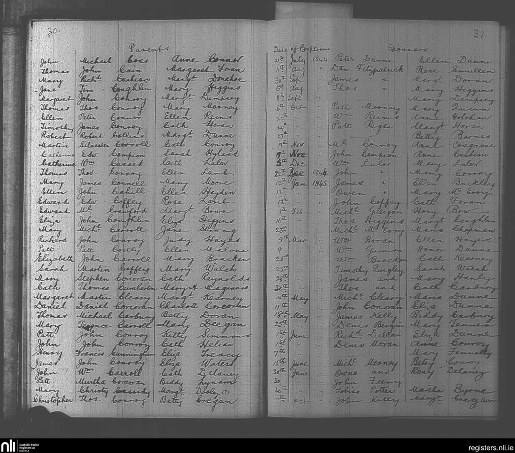 Mountmellick; County of Laois; Diocese of Kildare and Leighlin. Baptisms, July 1844 to Oct. 1845
