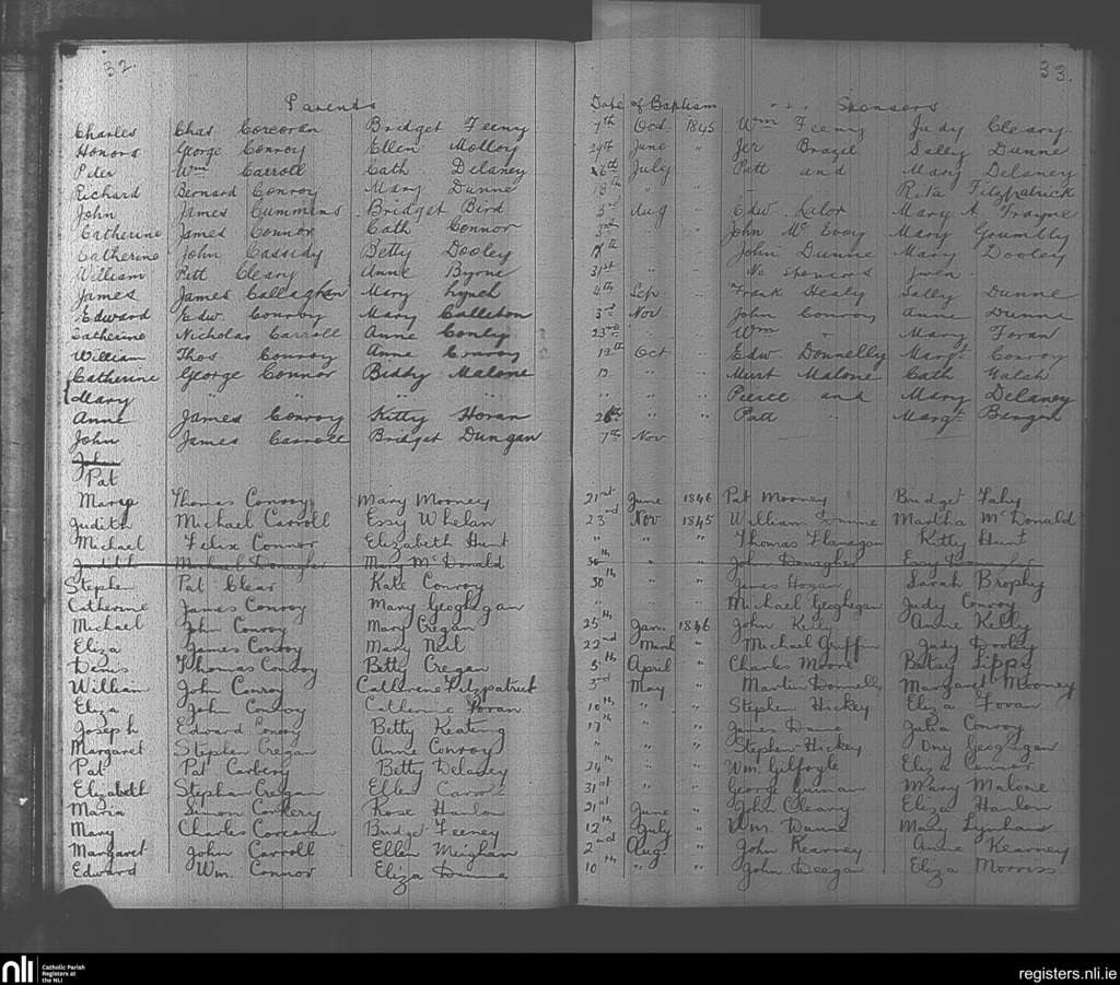 Mountmellick; County of Laois; Diocese of Kildare and Leighlin. Baptisms, June 1845 to Aug. 1846