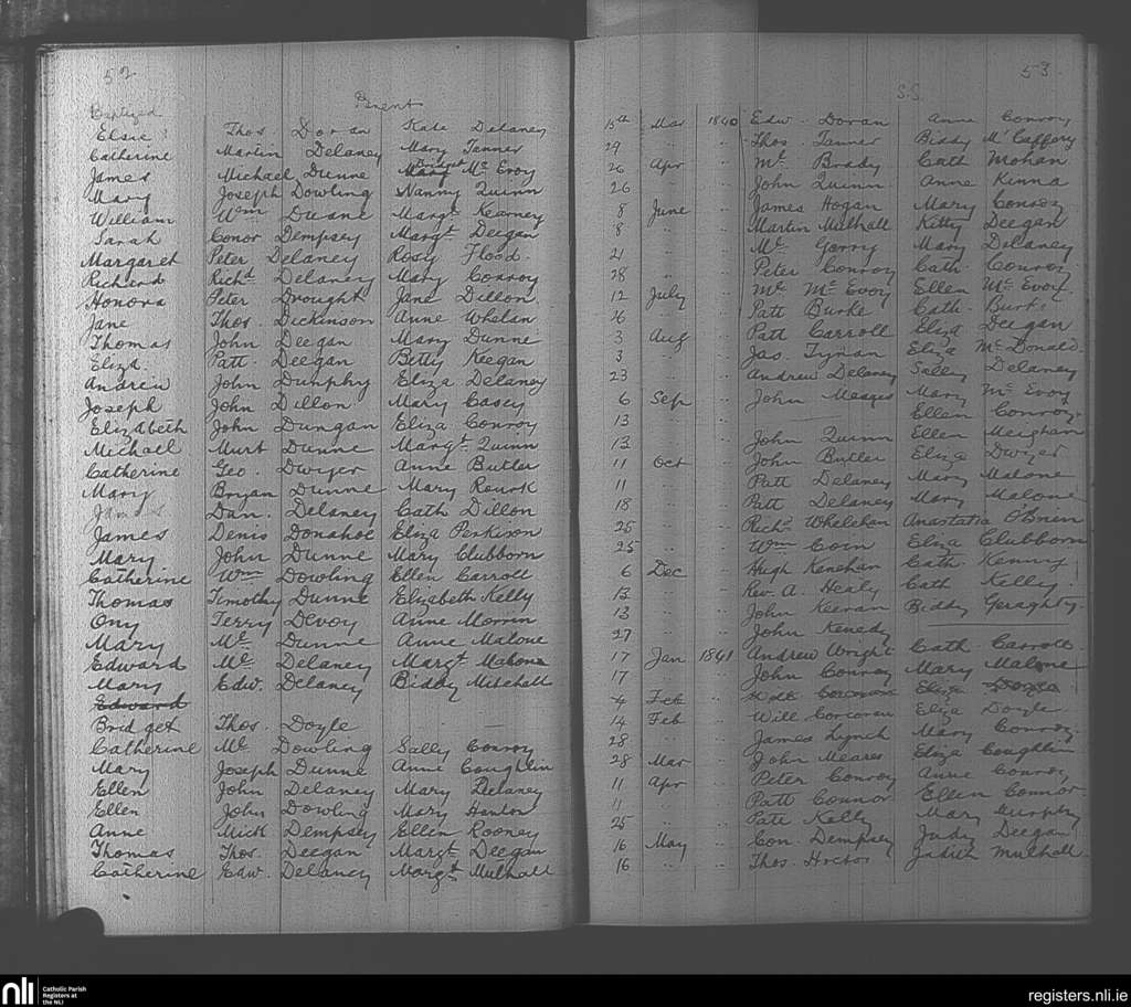 Mountmellick; County of Laois; Diocese of Kildare and Leighlin. Baptisms, Mar. 1840 to May 1841