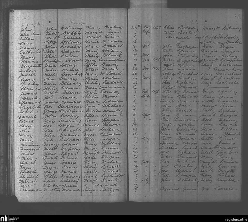 Mountmellick; County of Laois; Diocese of Kildare and Leighlin. Baptisms, Aug. 1845 to July 1846
