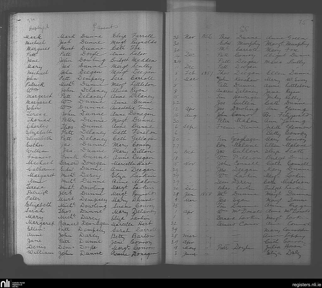 Mountmellick; County of Laois; Diocese of Kildare and Leighlin. Baptisms, Nov. 1856 to June 1858