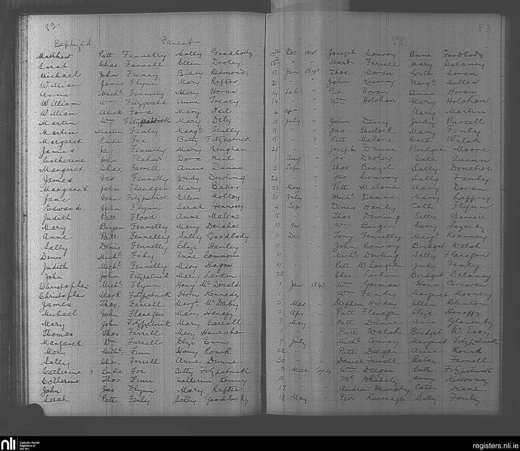 Mountmellick; County of Laois; Diocese of Kildare and Leighlin. Baptisms, Dec. 1840 to July 1843