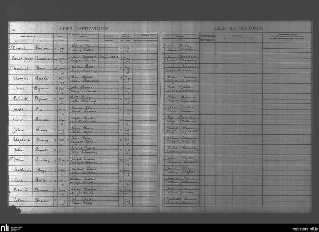 Mountmellick; County of Laois; Diocese of Kildare and Leighlin. Baptisms, Sep. 1872 to Aug. 1874
