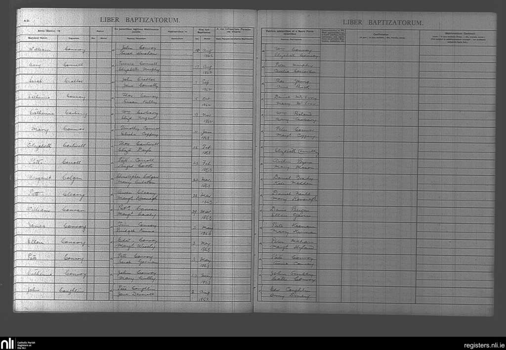 Mountmellick; County of Laois; Diocese of Kildare and Leighlin. Baptisms, Aug. 1862 to Aug. 1863