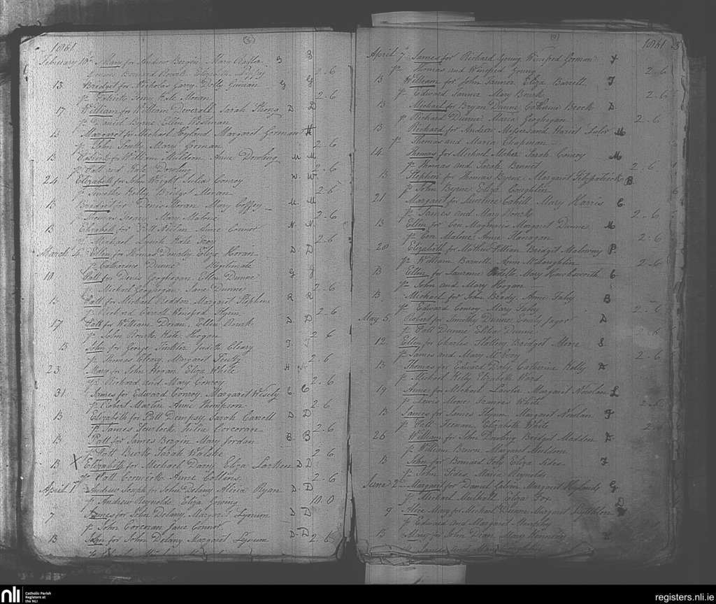 Mountmellick; County of Laois; Diocese of Kildare and Leighlin. Baptisms, Feb. 1861 to June 1861