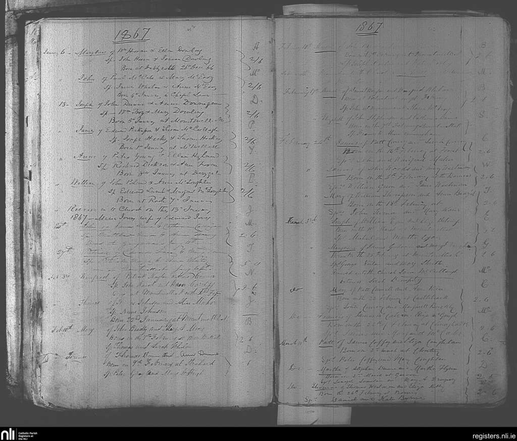 Mountmellick; County of Laois; Diocese of Kildare and Leighlin. Baptisms, Jan. 1867 to Mar. 1867