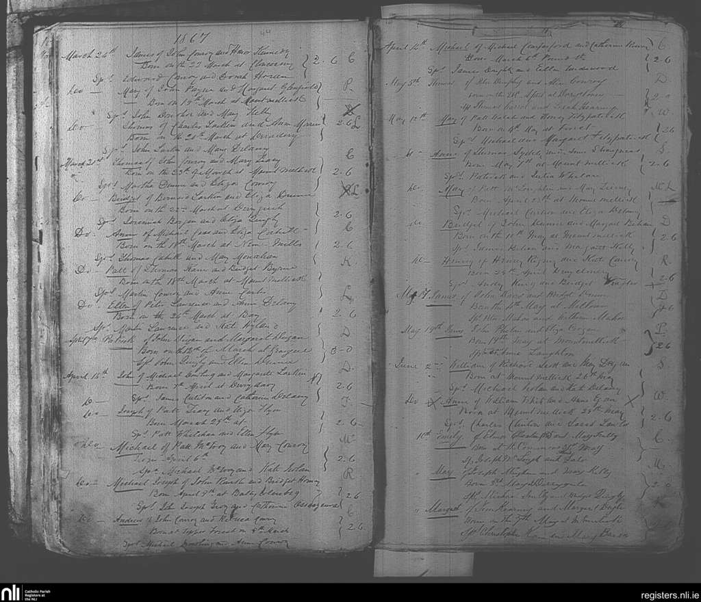 Mountmellick; County of Laois; Diocese of Kildare and Leighlin. Baptisms, Mar. 1867 to June 1867