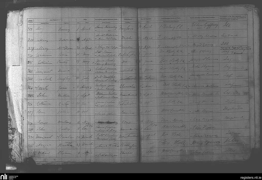 Mountmellick; County of Laois; Diocese of Kildare and Leighlin. Baptisms, Apr. 1873 to Apr. 1874