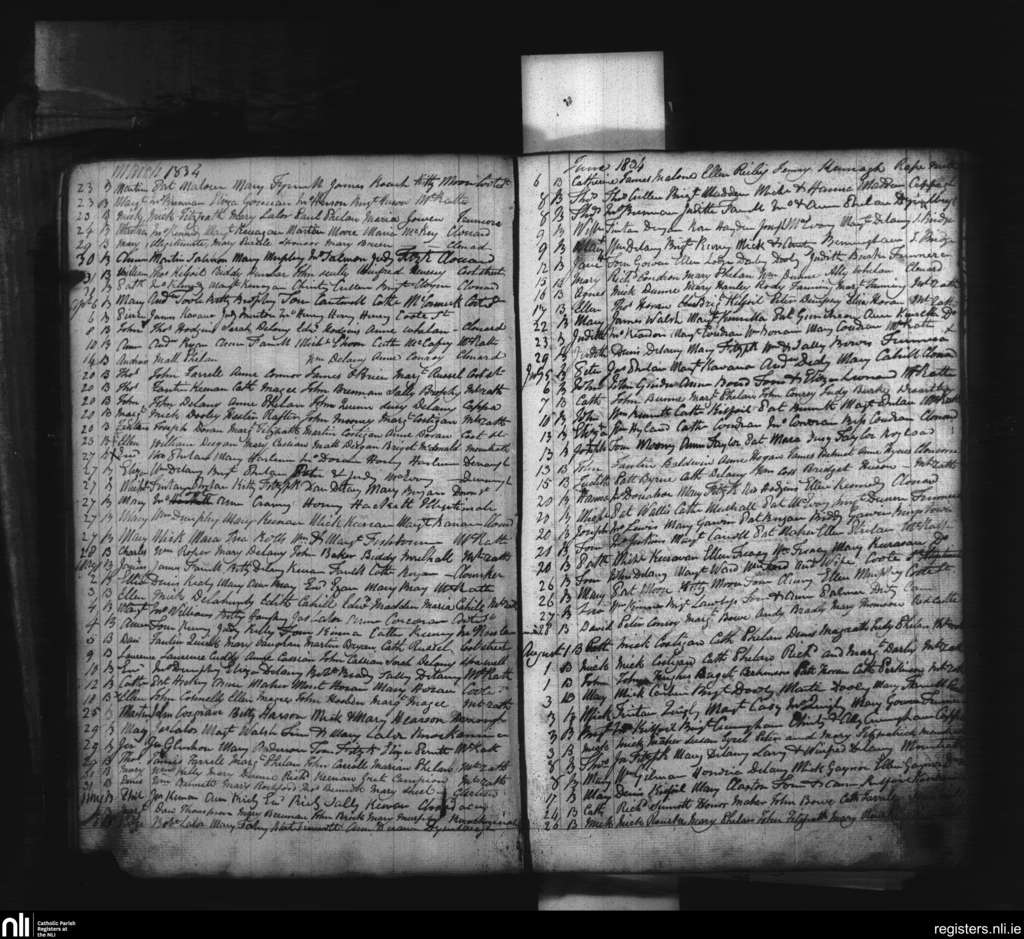 Mountrath; County of Laois; Diocese of Kildare and Leighlin. Baptisms, Mar. 1834 to Aug. 1834