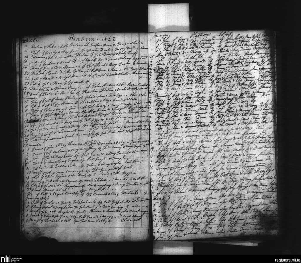 Mountrath; County of Laois; Diocese of Kildare and Leighlin. Baptisms, Oct. 1842 to Mar. 1843