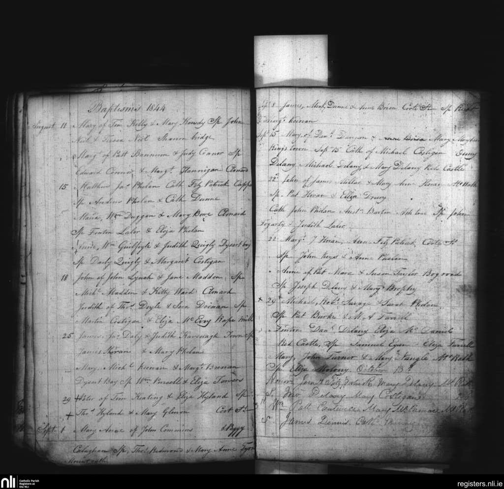 Mountrath; County of Laois; Diocese of Kildare and Leighlin. Baptisms, Aug. 1844 to Sep. 1844