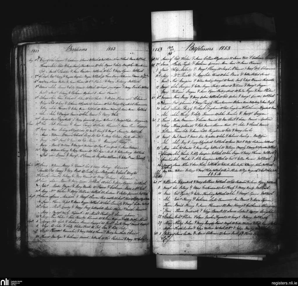 Mountrath; County of Laois; Diocese of Kildare and Leighlin. Baptisms, May 1853 to Feb. 1854