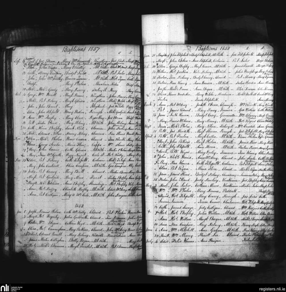 Mountrath; County of Laois; Diocese of Kildare and Leighlin. Baptisms, Sep. 1857 to July 1858