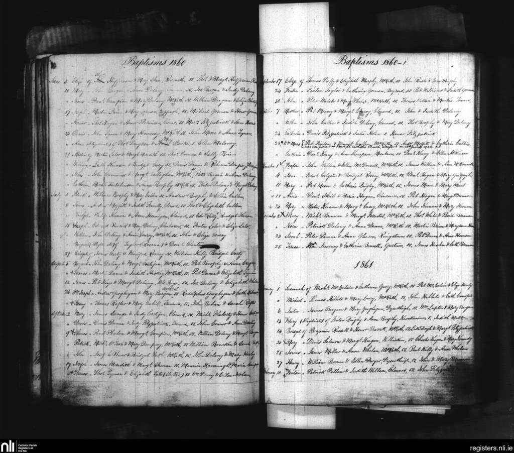 Mountrath; County of Laois; Diocese of Kildare and Leighlin. Baptisms, June 1860 to Feb. 1861