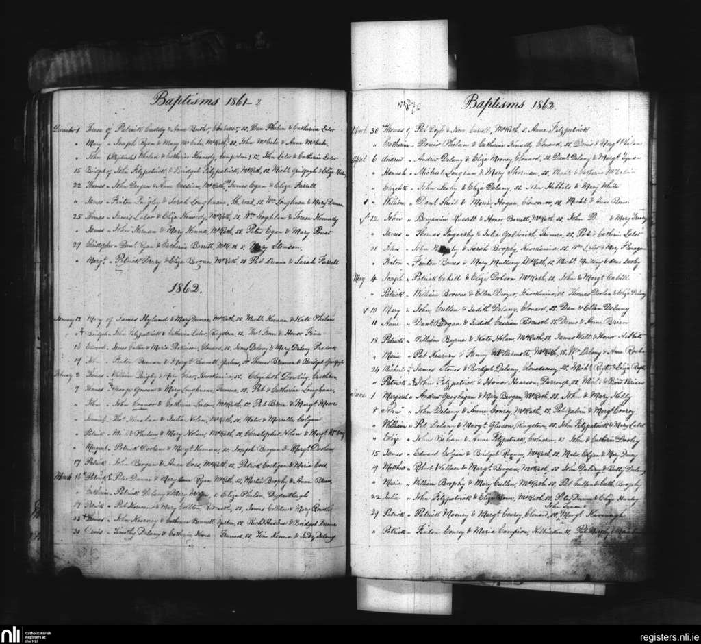 Mountrath; County of Laois; Diocese of Kildare and Leighlin. Baptisms, Dec. 1861 to June 1862
