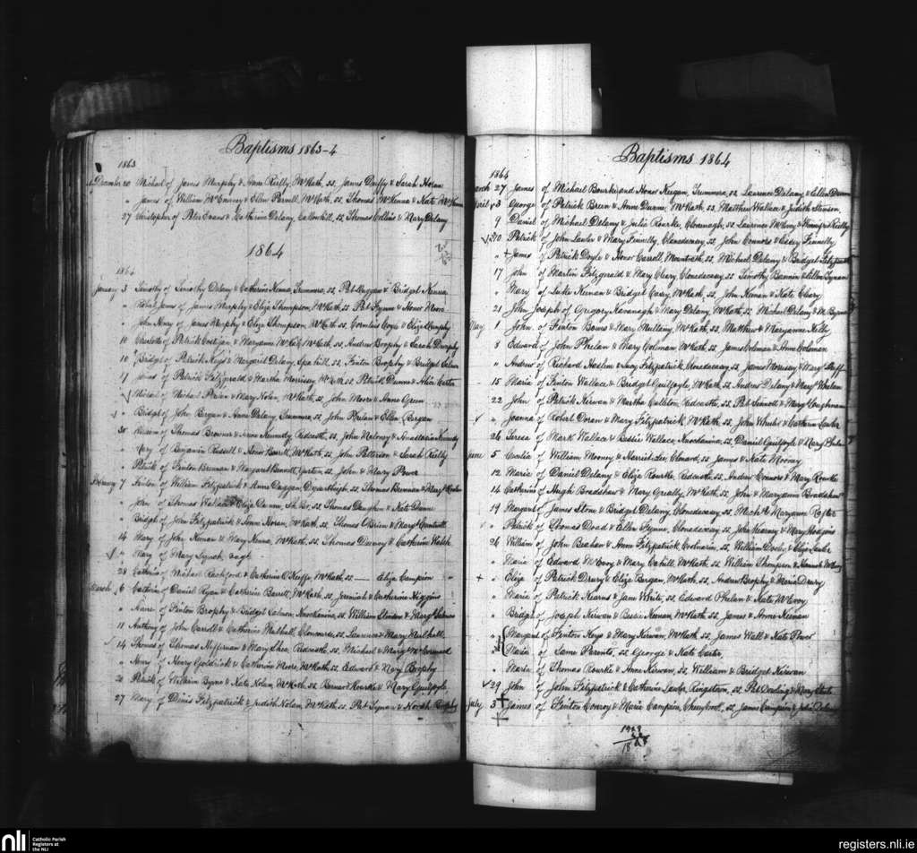 Mountrath; County of Laois; Diocese of Kildare and Leighlin. Baptisms, Dec. 1863 to July 1864