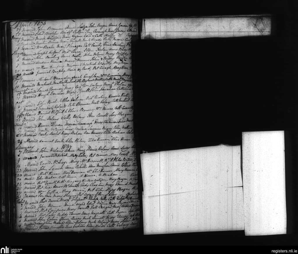 Mountrath; County of Laois; Diocese of Kildare and Leighlin. Marriages, Apr. 1836 to Feb. 1837