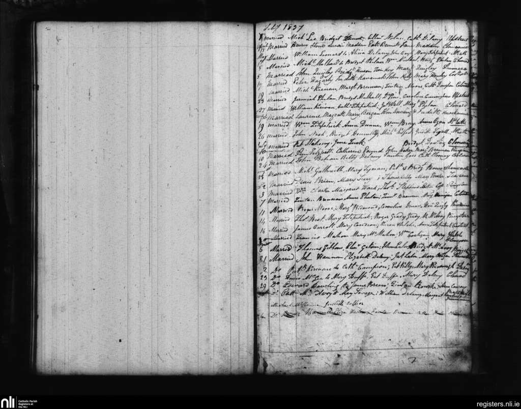 Mountrath; County of Laois; Diocese of Kildare and Leighlin. Marriages, Feb. 1837 to Nov. 1837
