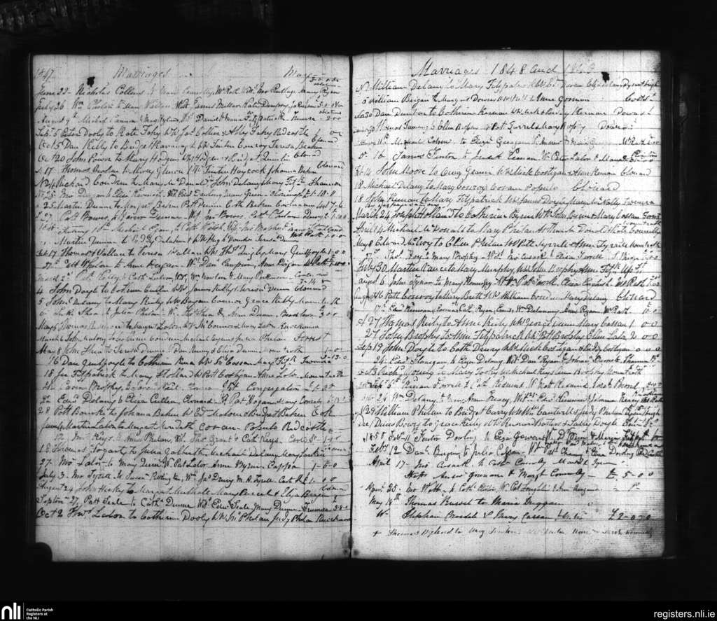 Mountrath; County of Laois; Diocese of Kildare and Leighlin. Marriages, June 1847 to May 1850