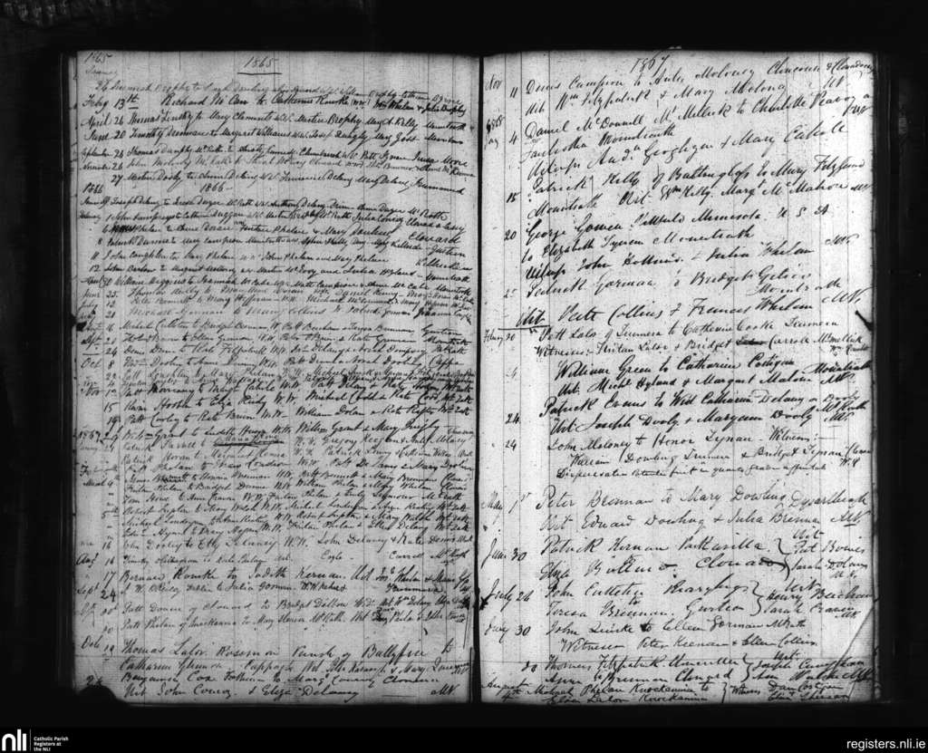 Mountrath; County of Laois; Diocese of Kildare and Leighlin. Marriages, Jan. 1865 to Aug. 1868