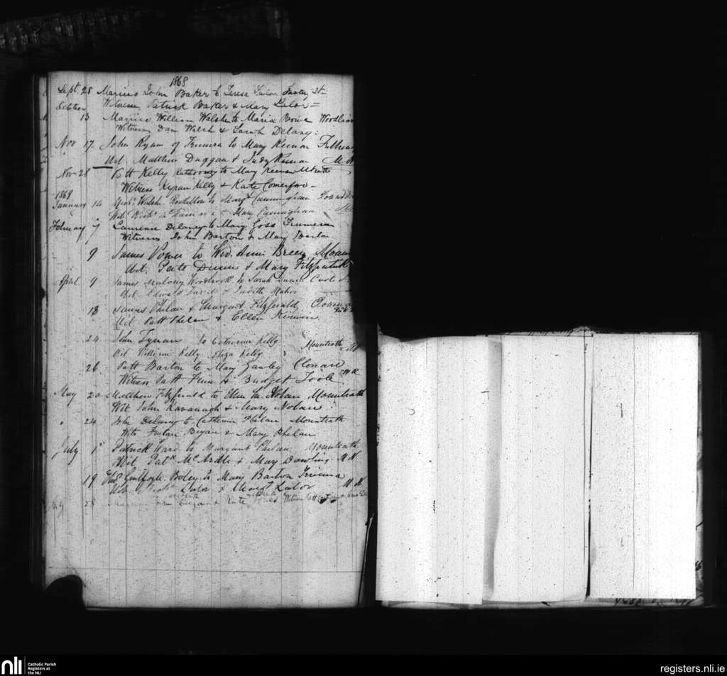 Mountrath; County of Laois; Diocese of Kildare and Leighlin. Marriages, Sep. 1868 to July 1869