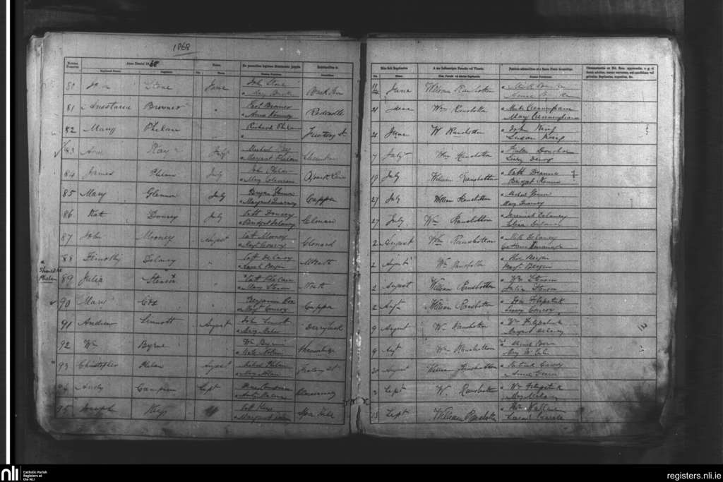 Mountrath; County of Laois; Diocese of Kildare and Leighlin. Baptisms, June 1868 to Sep. 1868