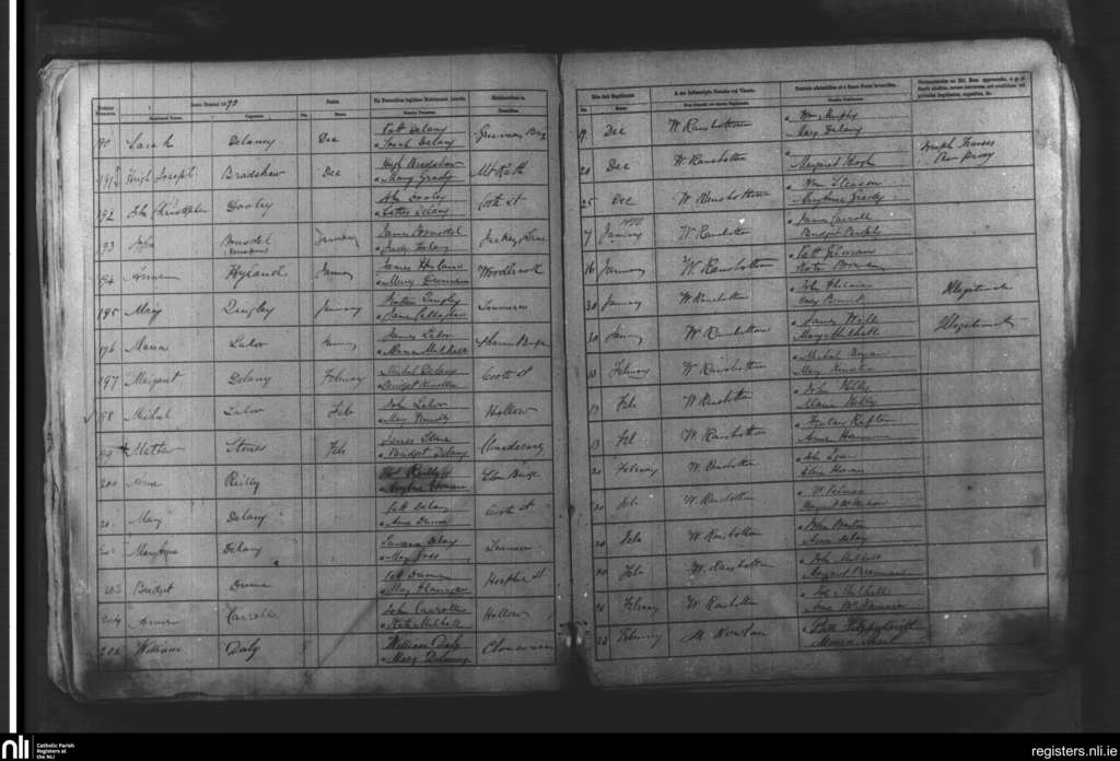 Mountrath; County of Laois; Diocese of Kildare and Leighlin. Baptisms, Dec. 1869 to Feb. 1870