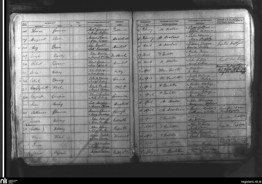 Mountrath; County of Laois; Diocese of Kildare and Leighlin. Baptisms, Feb. 1870 to May 1870