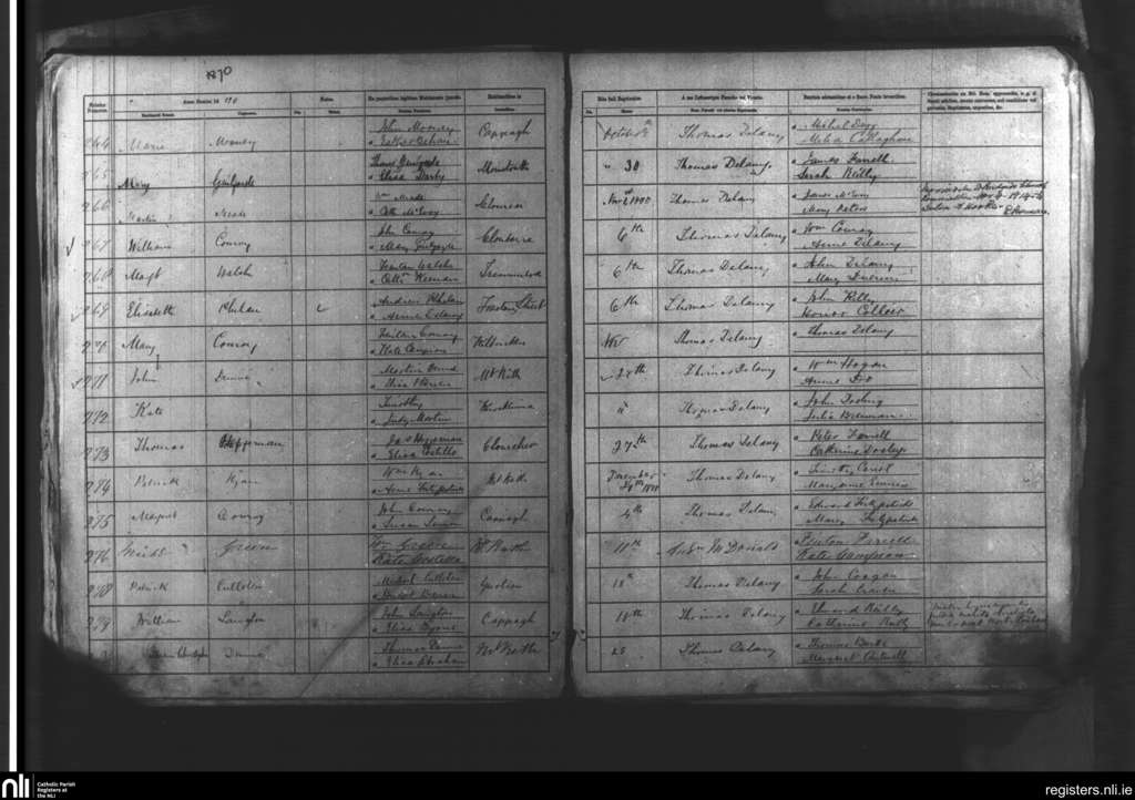 Mountrath; County of Laois; Diocese of Kildare and Leighlin. Baptisms, Oct. 1870 to Dec. 1870
