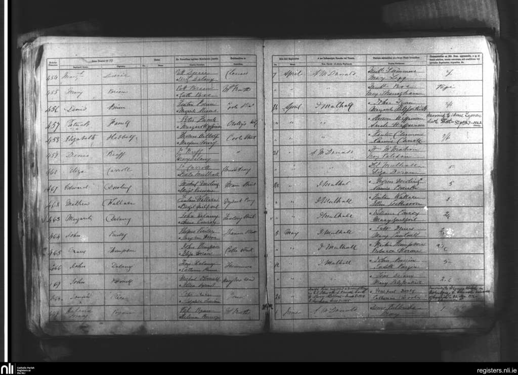 Mountrath; County of Laois; Diocese of Kildare and Leighlin. Baptisms, Apr. 1872 to June 1872