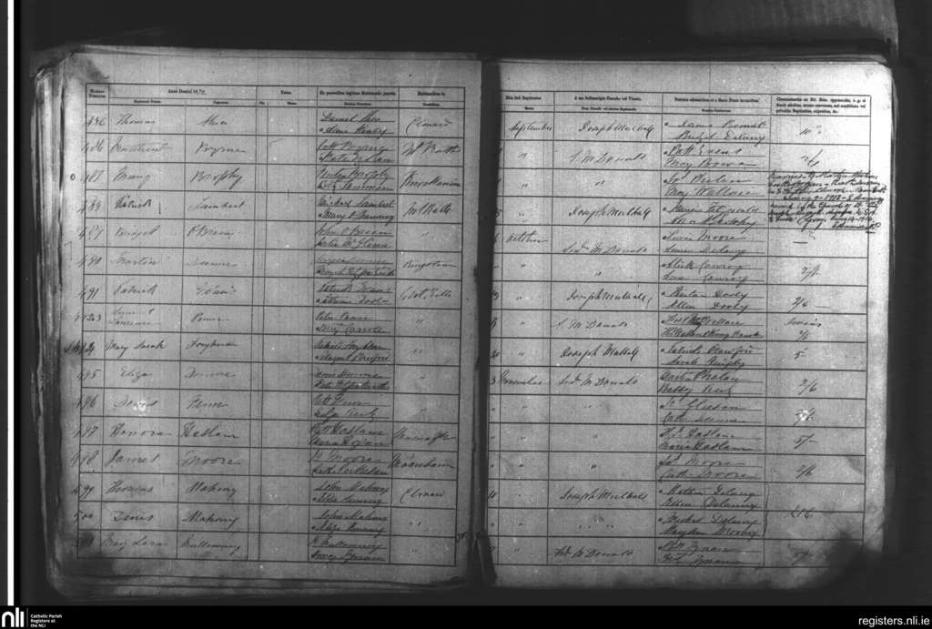 Mountrath; County of Laois; Diocese of Kildare and Leighlin. Baptisms, Sep. 1872 to Nov. 1872