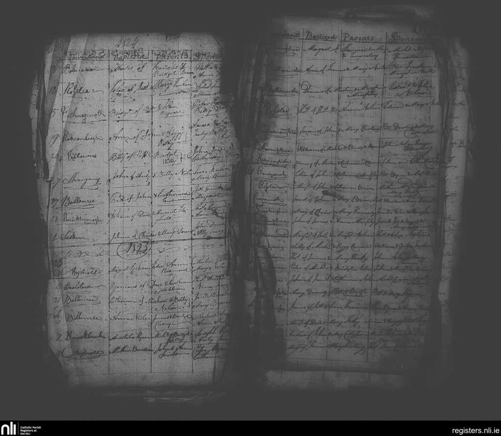 Myshall; County of Carlow; Diocese of Kildare and Leighlin. Baptisms, Dec. 1824 to Feb. 1825