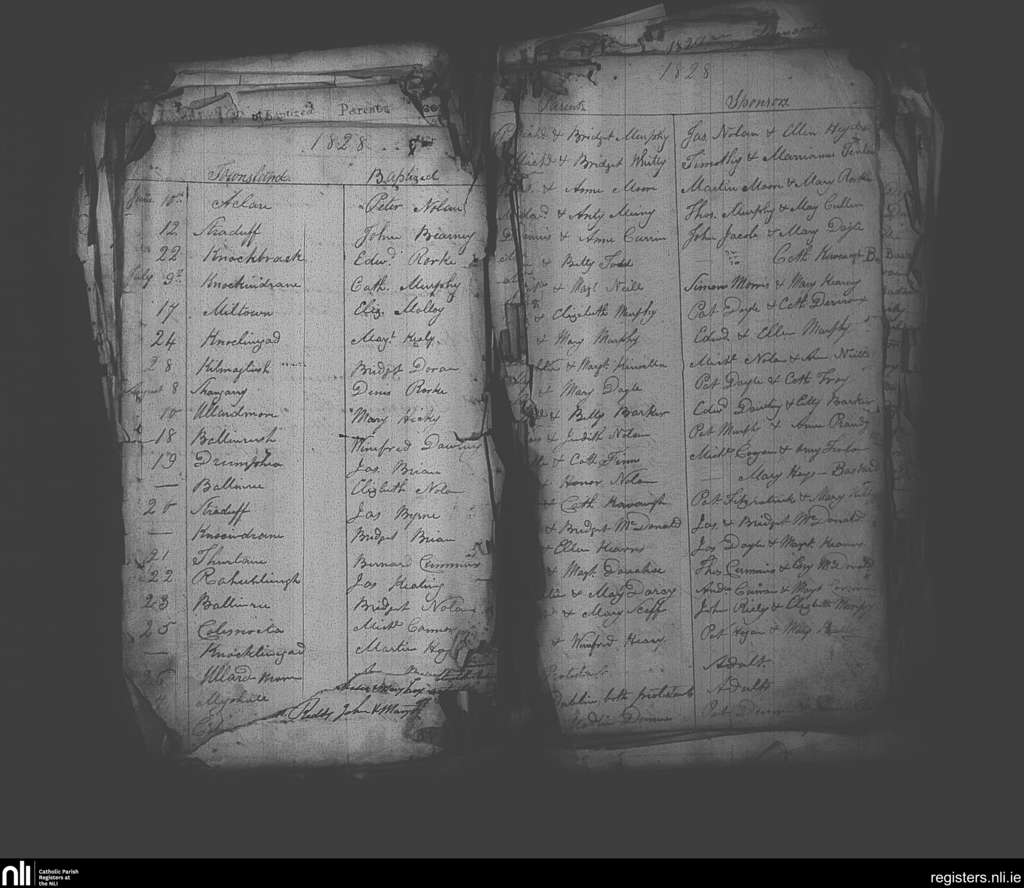 Myshall; County of Carlow; Diocese of Kildare and Leighlin. Baptisms, June 1828 to Aug. 1828