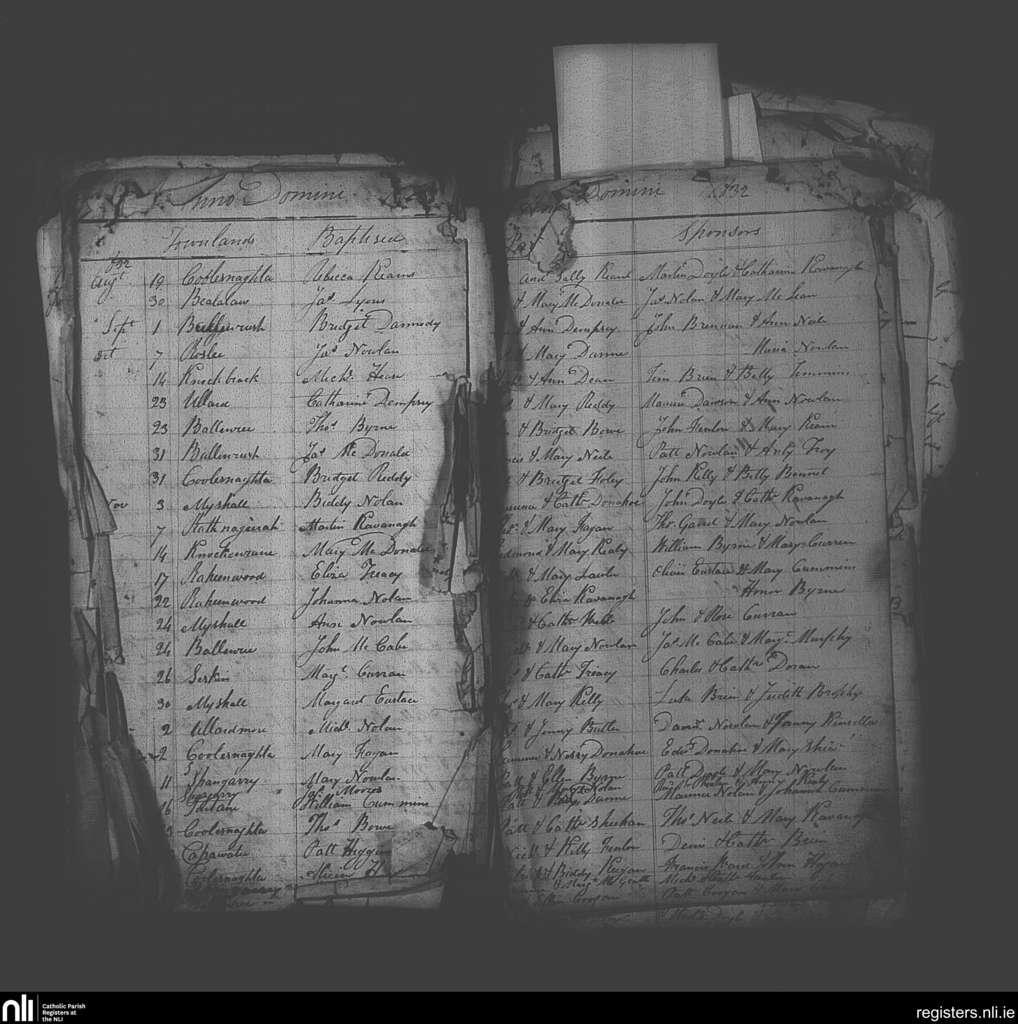 Myshall; County of Carlow; Diocese of Kildare and Leighlin. Baptisms, Aug. 1832 to Dec. 1832