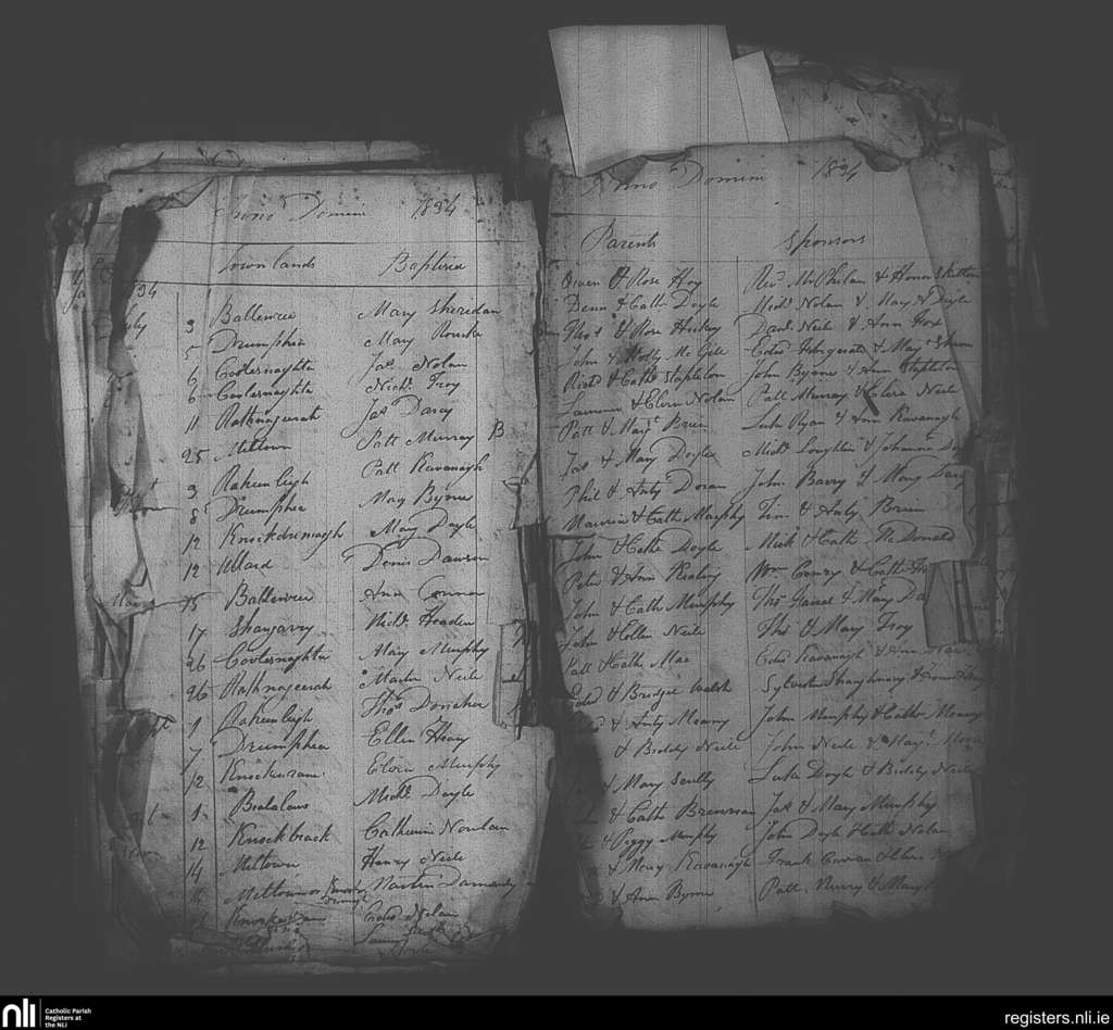 Myshall; County of Carlow; Diocese of Kildare and Leighlin. Baptisms, July 1834 to Nov. 1834