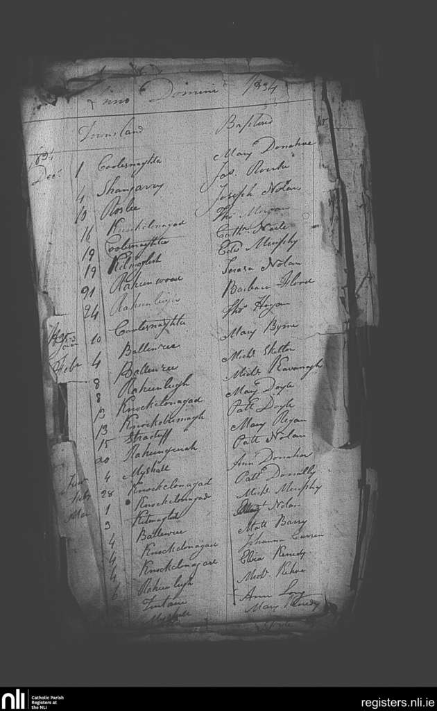Myshall; County of Carlow; Diocese of Kildare and Leighlin. Baptisms, Dec. 1834 to Mar. 1835