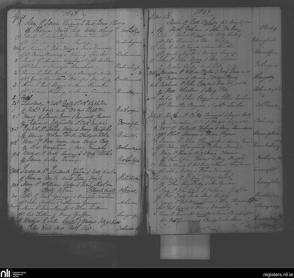Myshall; County of Carlow; Diocese of Kildare and Leighlin. Baptisms, Apr. 1847 to Aug. 1847