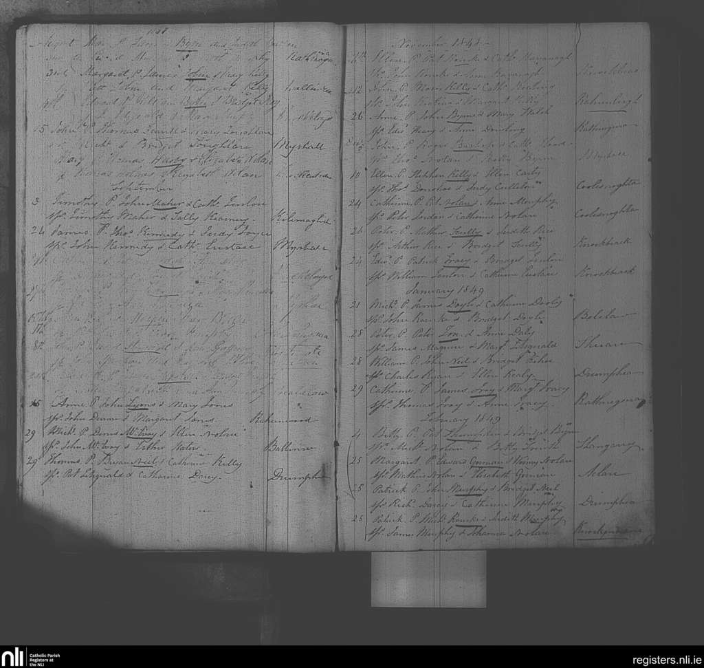 Myshall; County of Carlow; Diocese of Kildare and Leighlin. Baptisms, Aug. 1848 to Feb. 1849