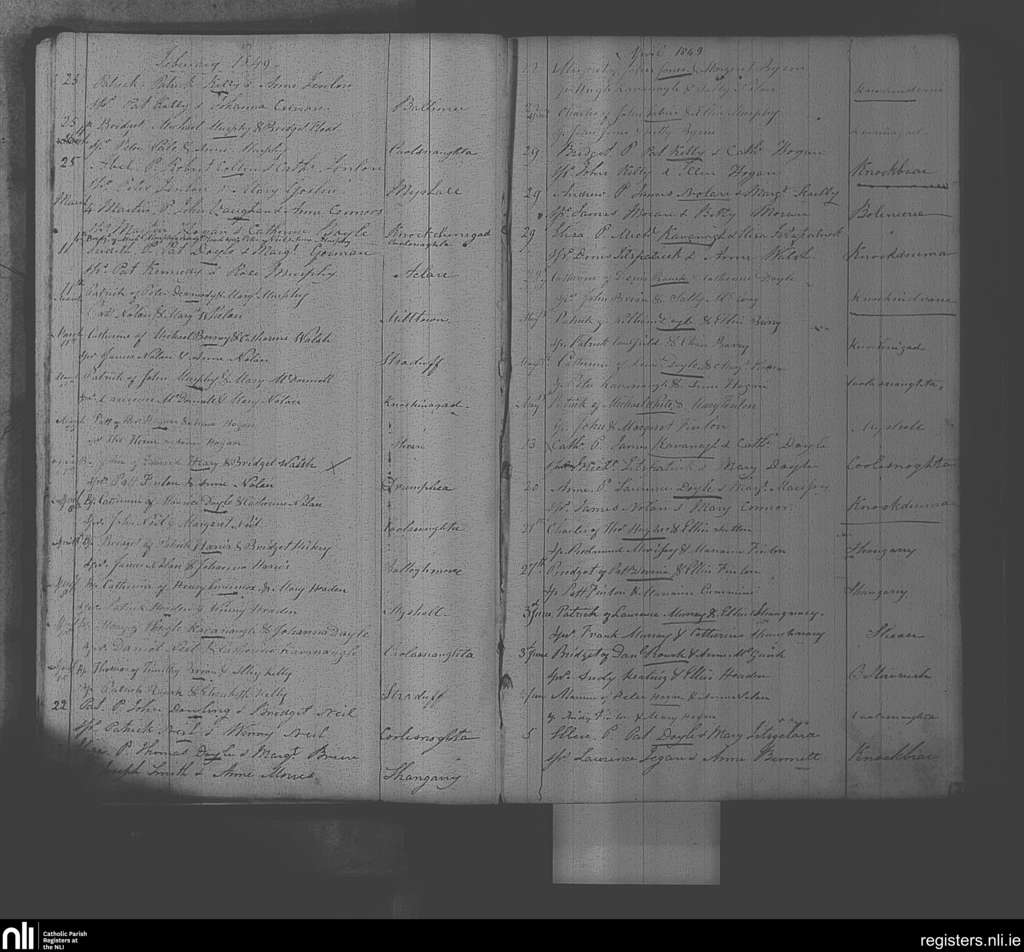 Myshall; County of Carlow; Diocese of Kildare and Leighlin. Baptisms, Feb. 1849 to June 1849