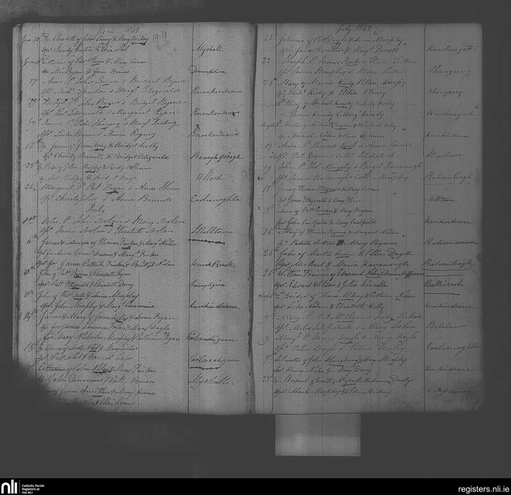 Myshall; County of Carlow; Diocese of Kildare and Leighlin. Baptisms, June 1849 to Sep. 1849
